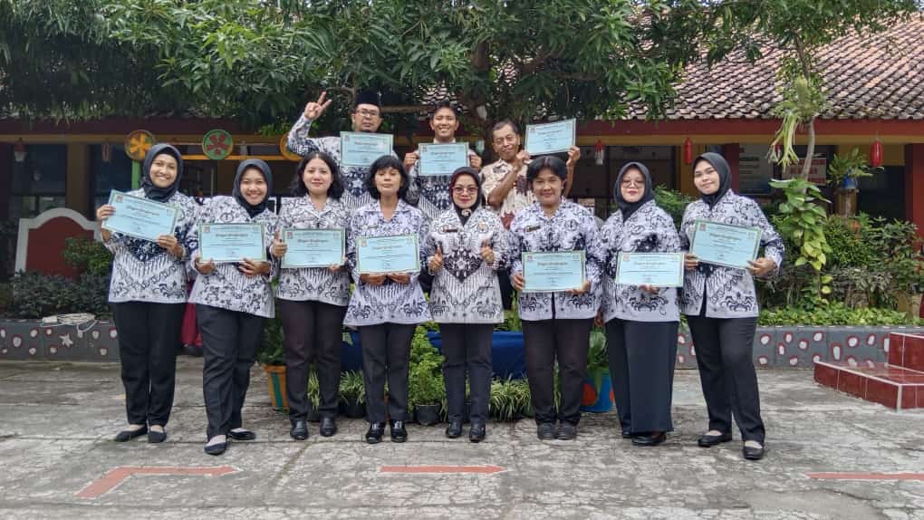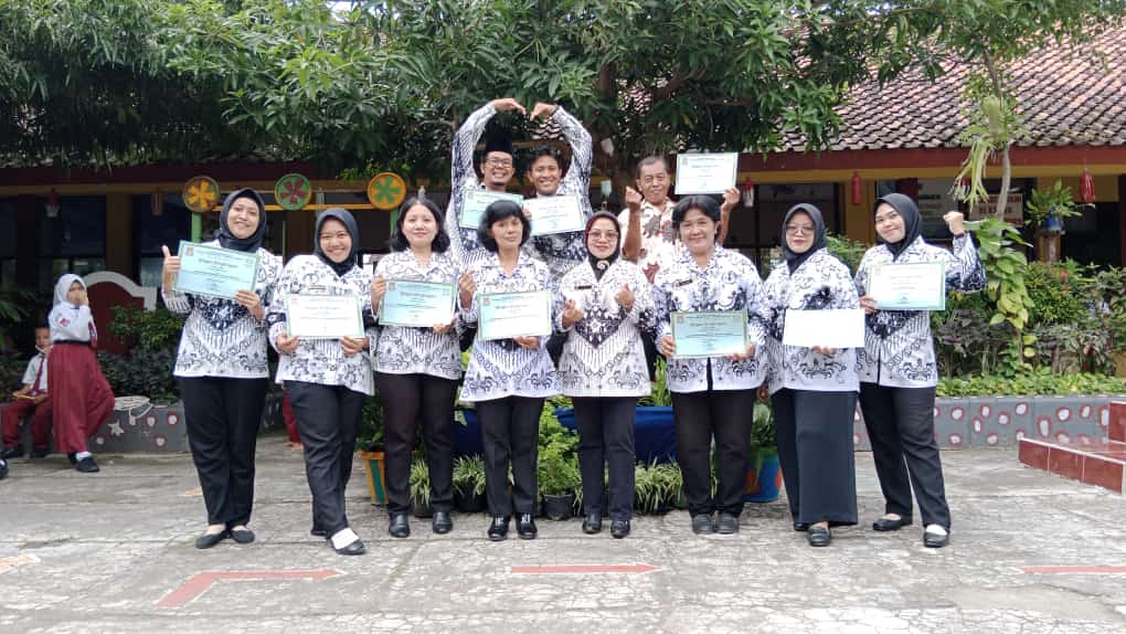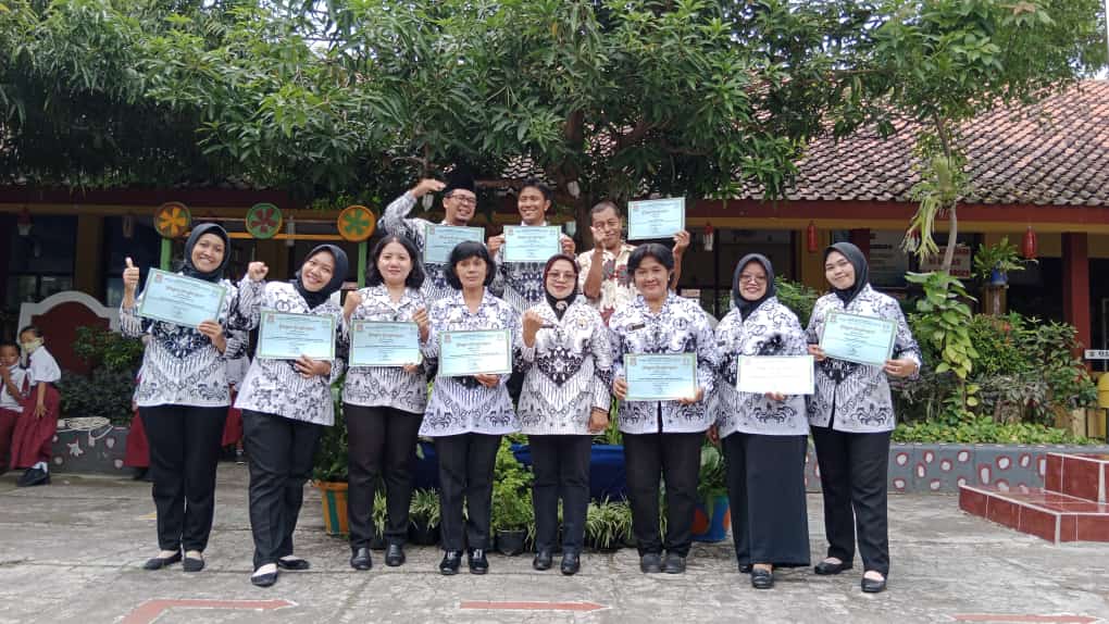 Guru-guru mendapat penghargaan dari Ibu Warsiti. S.Pd. Selaku Kepala Sekolah SDN Barusari 02.